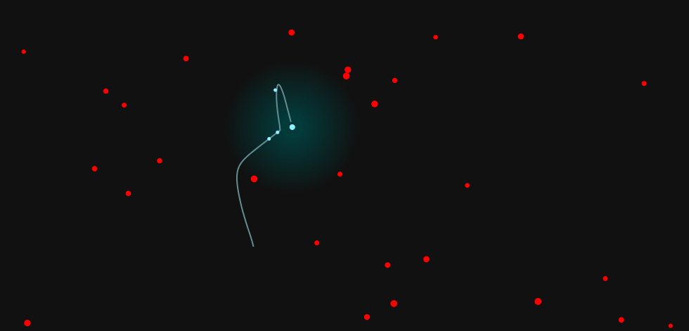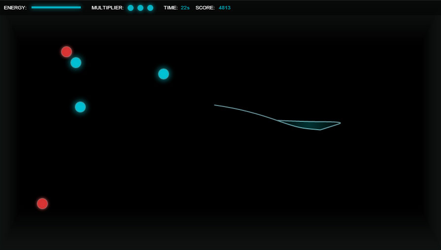 Very soothing and simple game created by @hakimel with only one objective: avoid colliding with the red dots. You can activate a boosts by picking up the rare green dots.