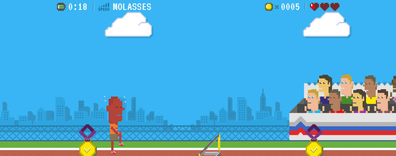 A nice game by puma in which the objective is to stay alive for as long as possible by avoiding obstacles and score high by taking medals in the way. It features 8-bit graphics with prallax backgrounds showing the power of HTML5.